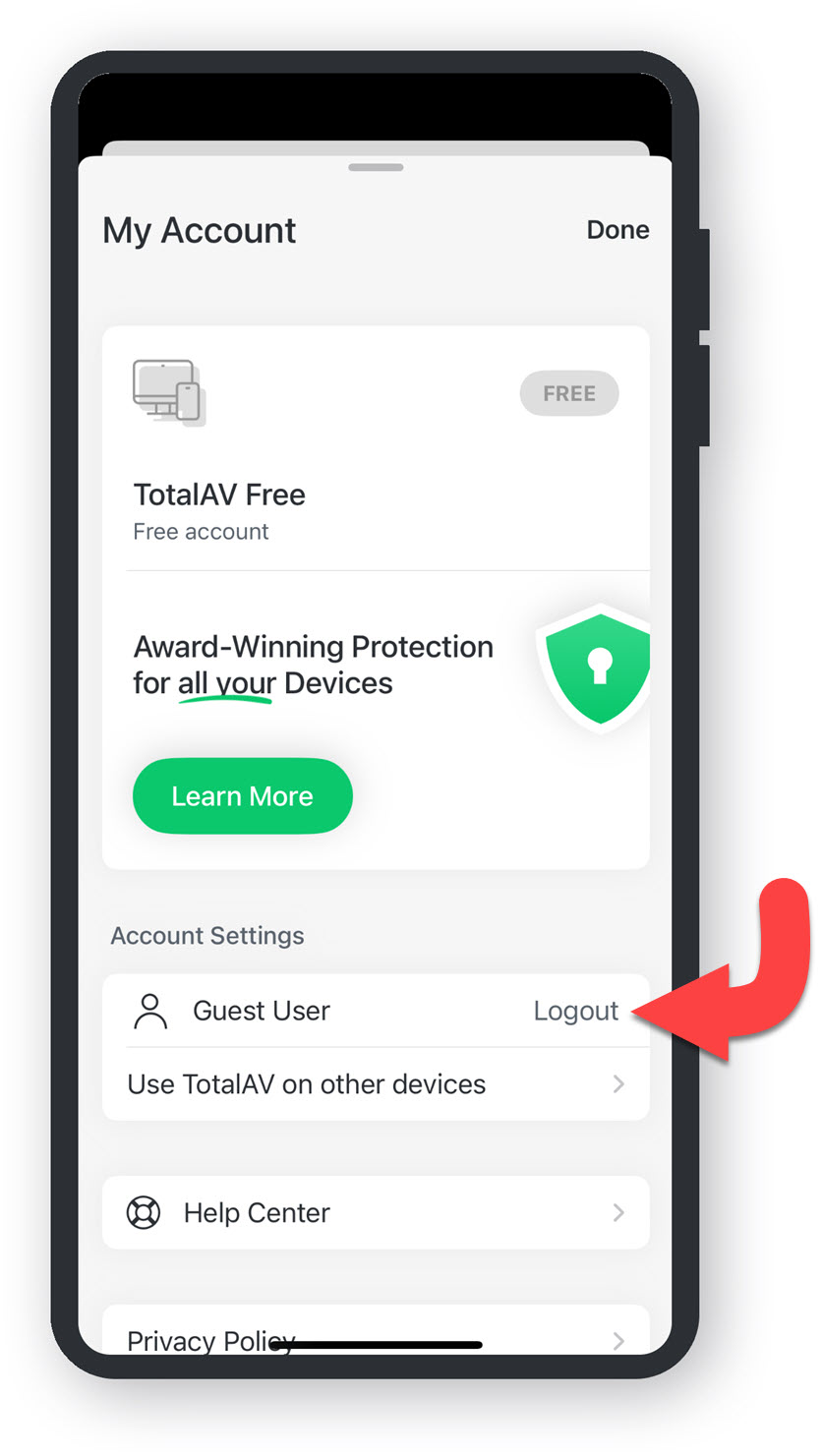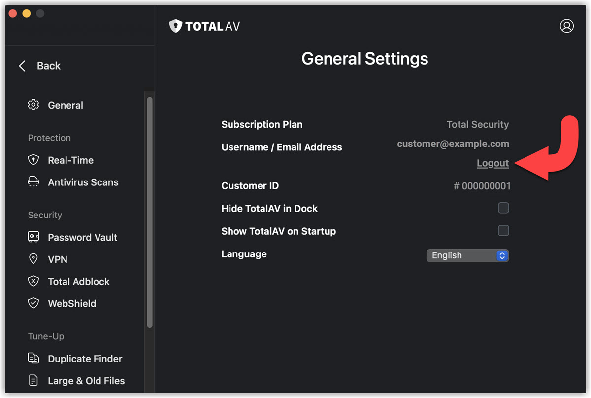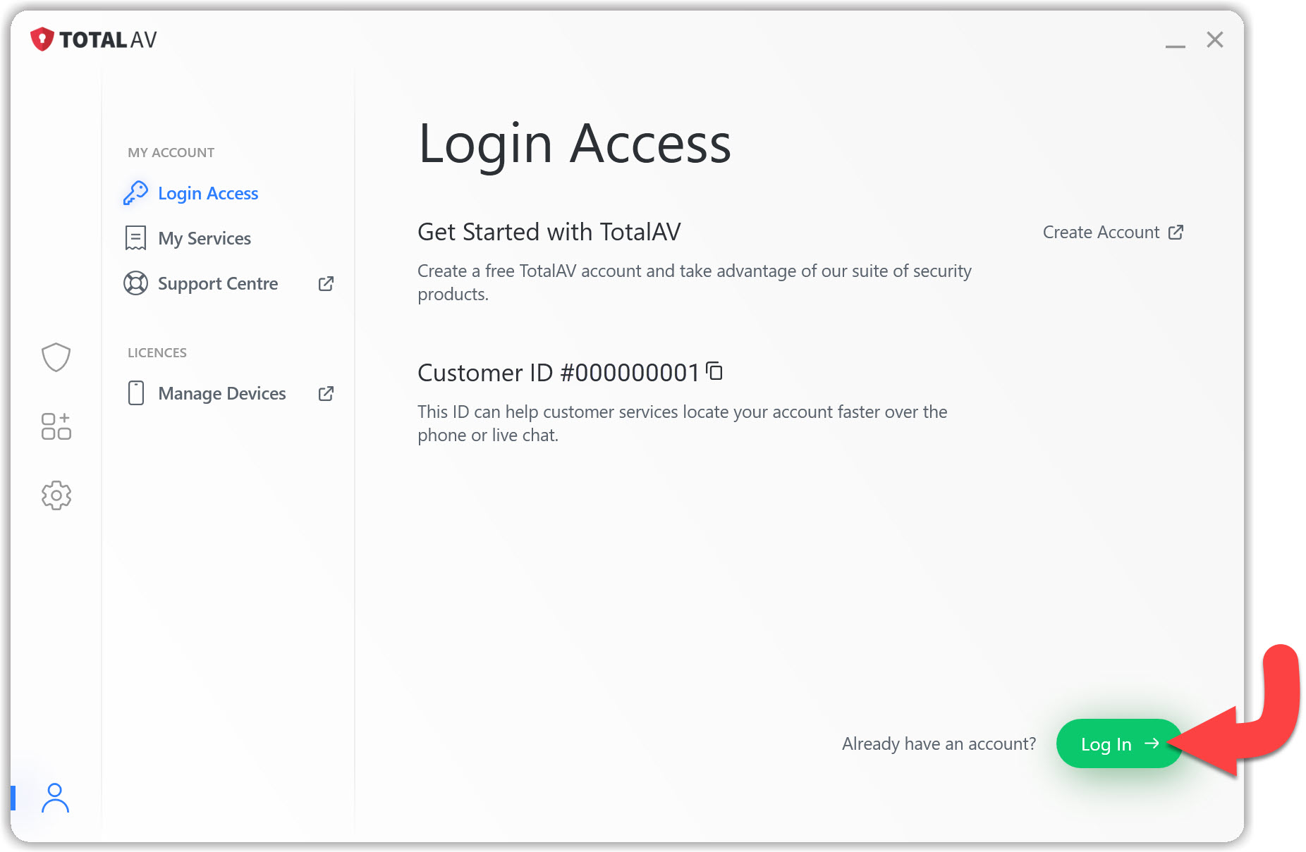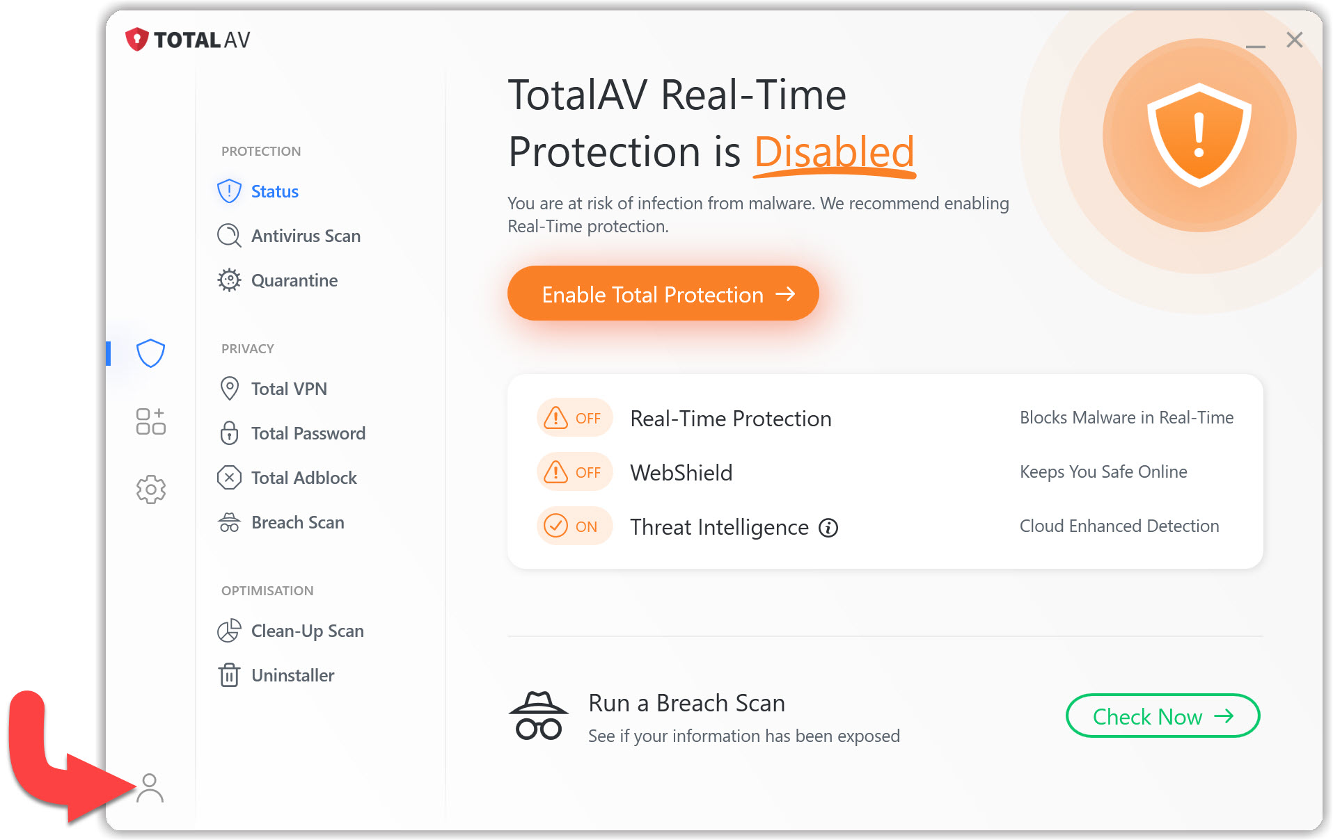 V levém dolním rohu aplikace TotalAV klikněte na ikonu Můj účet.